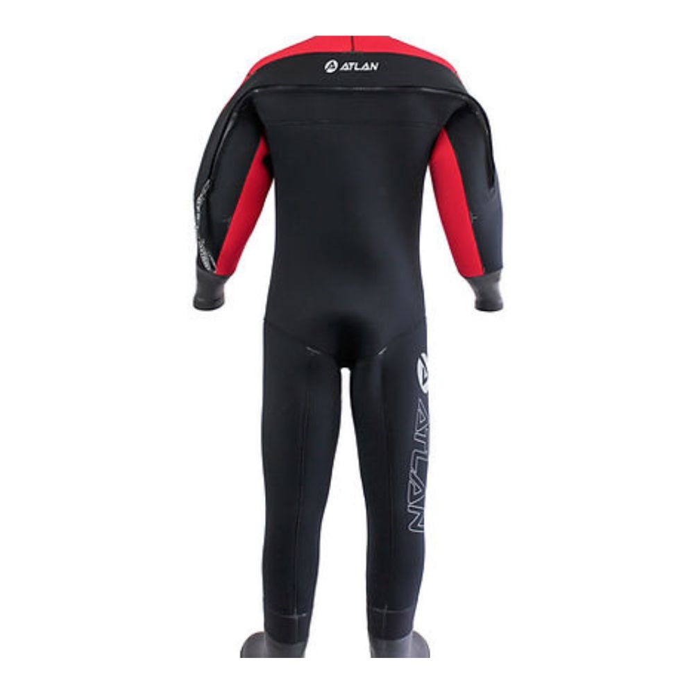 This drysuit is designed for diving in very cold water. The laminated neoprene with crosstuck nylon as well as the vulcanized boots and knee pads give additional protection against scratches and abrasion.